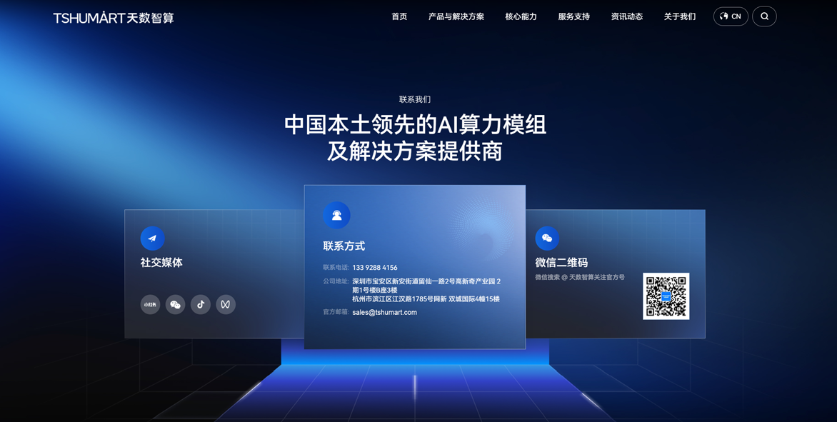 全新上线的官网,是天数智算对外展示企业品牌形象、核心实力与产品服务的重要窗口。在这里,您可以: