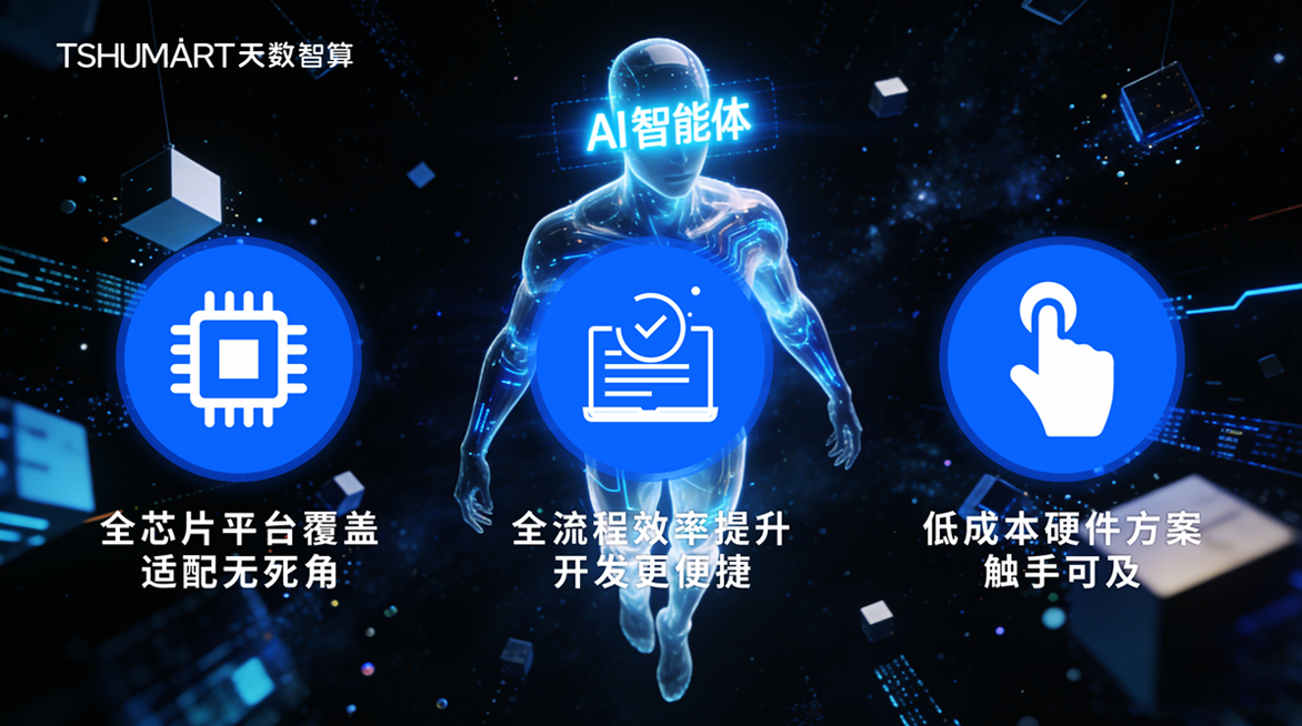 天数智算AI智能体打破传统AI方案“高成本、高门槛、难部署”的行业痛点,凭借全芯片平台覆盖、全流程效率提升、低成本硬件方案三大核心优势,让各类企业、各类场景都能轻松接入AI能力: